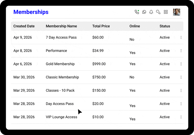 Wellyx supports any membership structure your business requires. You can create monthly recurring memberships, annual subscriptions, pay-as-you-go passes, class packs with a set number of sessions, or unlimited access plans. Each membership type can include specific classes, services, or facility access — you define exactly what members receive. You can also set different pricing for different commitment levels, offer promotional rates for new members, or create premium tiers with additional benefits. The system adapts to your business model rather than forcing you into a fixed structure.