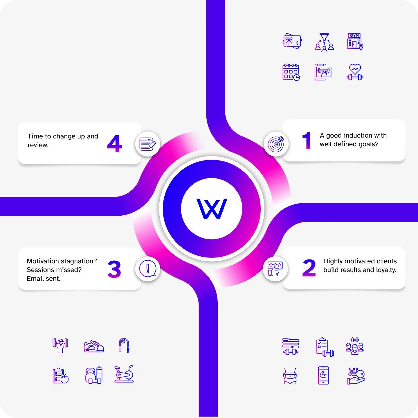Wellyx makes this simple by continuously tracking changes in member or client behavior, such as fewer check-ins, missed bookings, or a drop in class attendance.