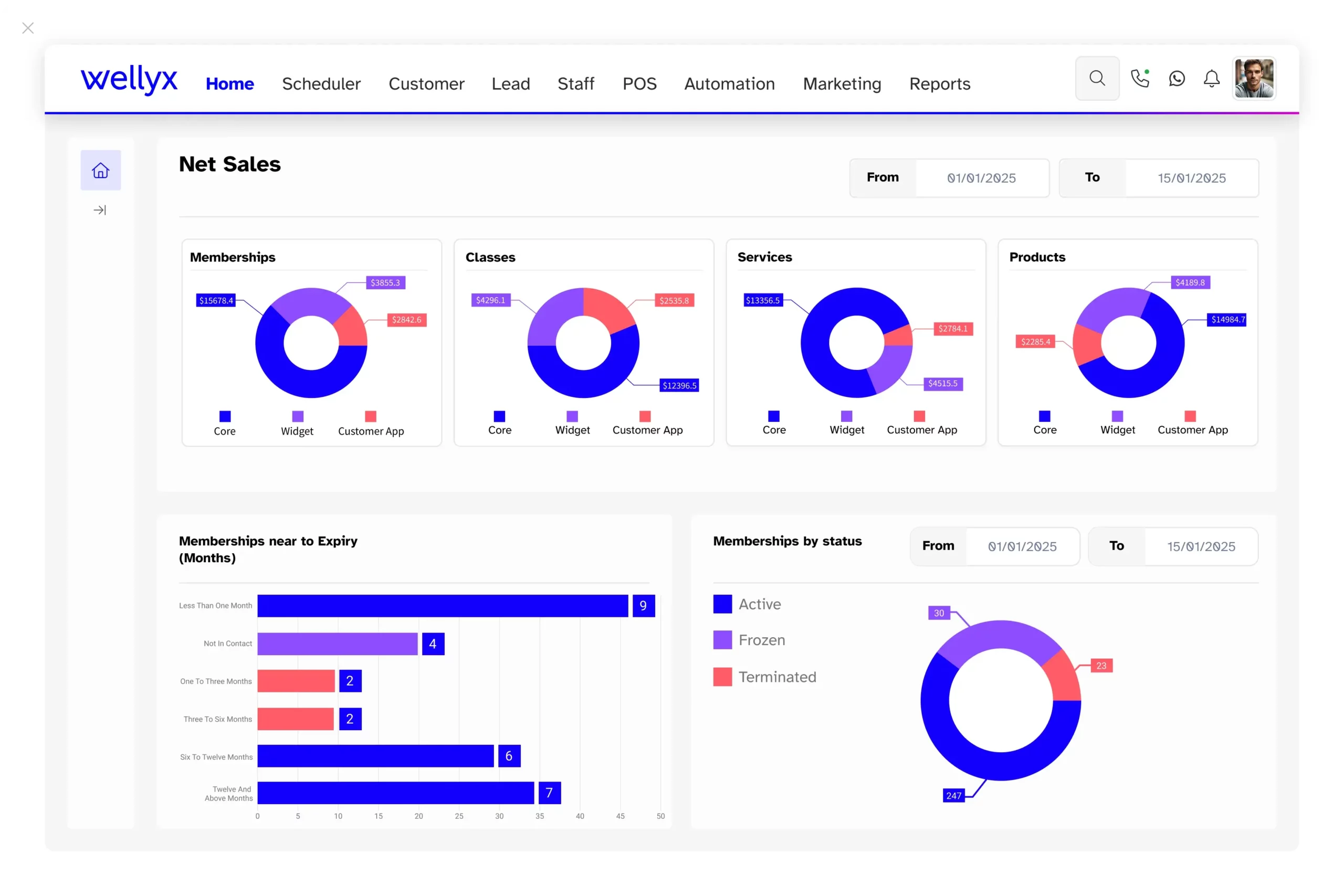 Wellyx provides insightful dashboards which give you the full picture of how your gym is performing.